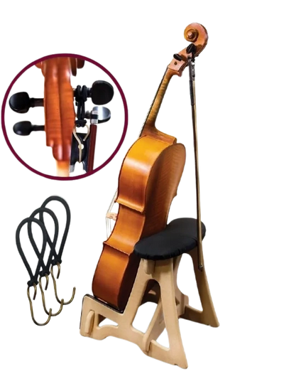 The Amazing Cello Stand is made of rugged, medium density fiberboard (MDF) — exterior grade and formaldehyde-free. Available in two finishes – natural and the premium finish, Concert Black, it breaks apart for easy transport and stores flat when not in use. It really is two solutions in one.